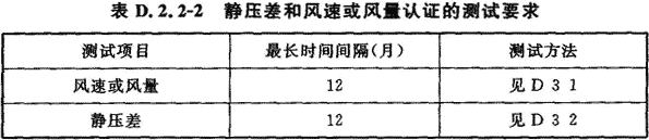 D.2.2 空氣潔凈度等級、靜壓差、風(fēng)速或風(fēng)量的認(rèn)證測試的最長時間間隔應(yīng)符合表D.2.2—1和表D.2.2—2的規(guī)定。
