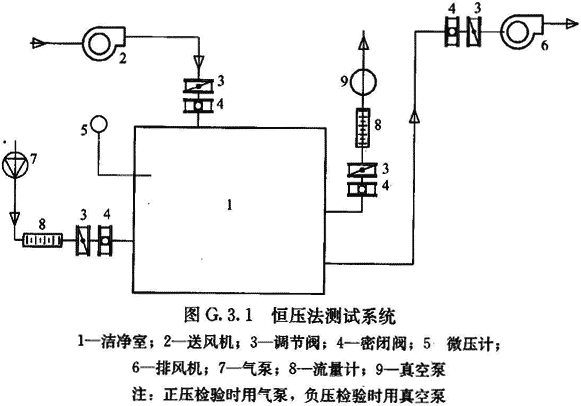G.1.1 保持室內為正壓或負壓均能滿足檢驗要求,但條件允許時,負壓潔凈室宜用正壓檢驗,正壓潔凈室宜用負壓檢驗。