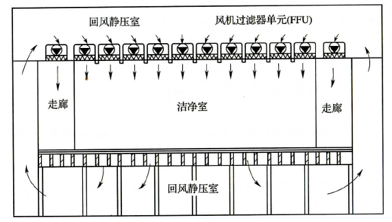 圖2 風(fēng)機(jī)過濾器單元送風(fēng)方式(FFU)示意圖