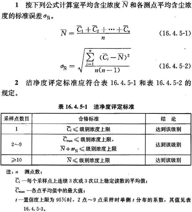 16.4.5 空氣潔凈度級(jí)別應(yīng)按附錄E檢驗(yàn)微粒計(jì)數(shù)濃度,然后按以下程序計(jì)算出空氣潔凈度級(jí)別并評(píng)價(jià)。