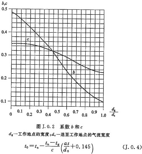 J.0.4 送風(fēng)口的出口溫度應(yīng)按下式計算。當(dāng)送冷風(fēng)時,計算的送風(fēng)口出口溫度較低時,可選用較大尺寸的送風(fēng)口重新確定相關(guān)參數(shù)。