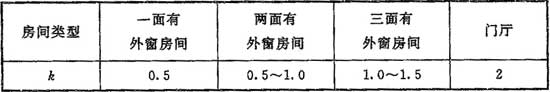 式中:Q——由門窗縫隙滲入室內的冷空氣的耗熱量(W);