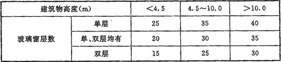 F.0.6 生產廠房、倉庫、公用輔助建筑物,加熱由門窗縫隙滲入室內的冷空氣的耗熱量占圍護結構總耗熱量的百分率可按表F.0.6確定。