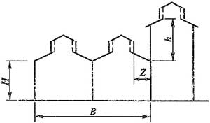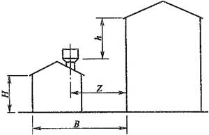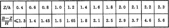 注:當(dāng)Z/h>2.3時,建筑物的相關(guān)尺寸可不受限制。