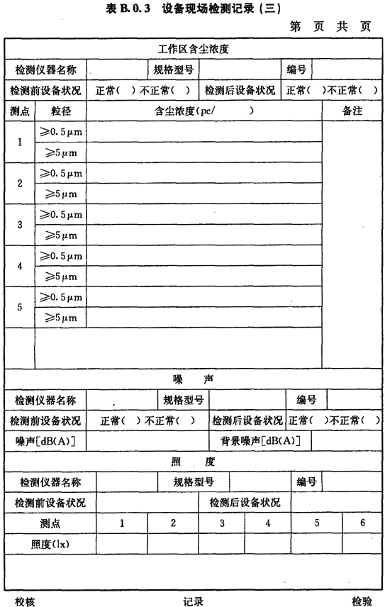 B.0.3 工作區(qū)含塵濃度、噪聲、照度的檢測(cè)應(yīng)按表B.0.3進(jìn)行記錄。