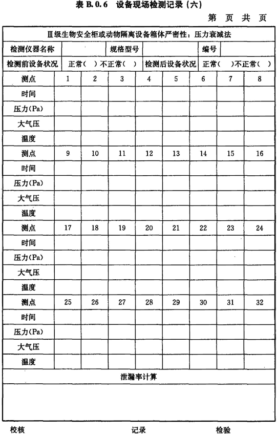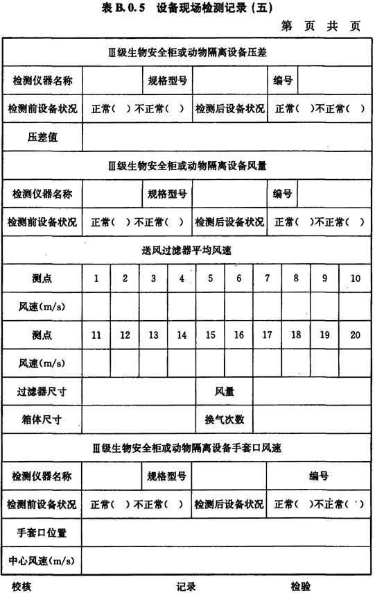 附錄B 生物安全設(shè)備現(xiàn)場(chǎng)檢測(cè)記錄用表