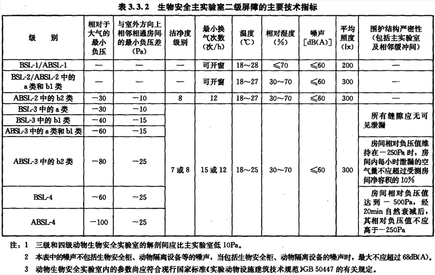 3.3 生物安全實驗室的技術指標