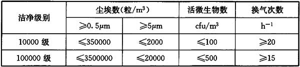 該標(biāo)準(zhǔn)中有關(guān)廠房潔凈度級別及換氣次數(shù)的要求如表12所示。