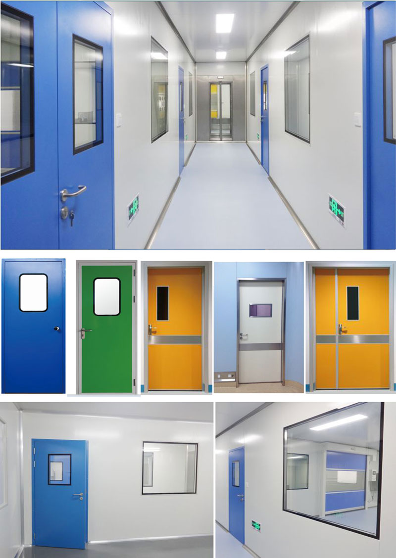 凈化門(mén):配套用于各級(jí)別潔凈室,凈化房,無(wú)塵室,活動(dòng)房,以及用彩鋼板做隔斷的場(chǎng)所。四周雙層密封,保溫,隔熱,隔音??刹捎貌输摪寤虿讳P鋼板定制不同規(guī)格尺寸的凈化門(mén),鎖具,彩鋼板顏色,掃地條等均可依要求配置。